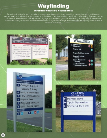 of the most extensive and critically located signage on the exterior grounds. Wayfinding actually begins beyond the
