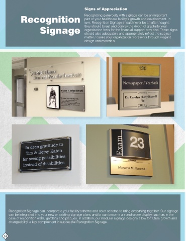 Recognition Recognizing generosity with signage can be an important